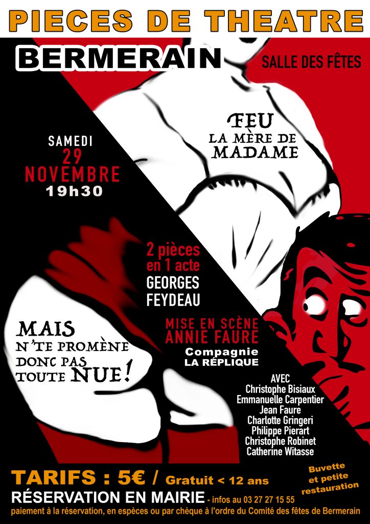 Samedi 29 novembre à 19h30, la Troupe La Réplique sera à la salle des fêtes de BERMERAIN ! Les places sont disponibles en mairie aux heures d’ouverture